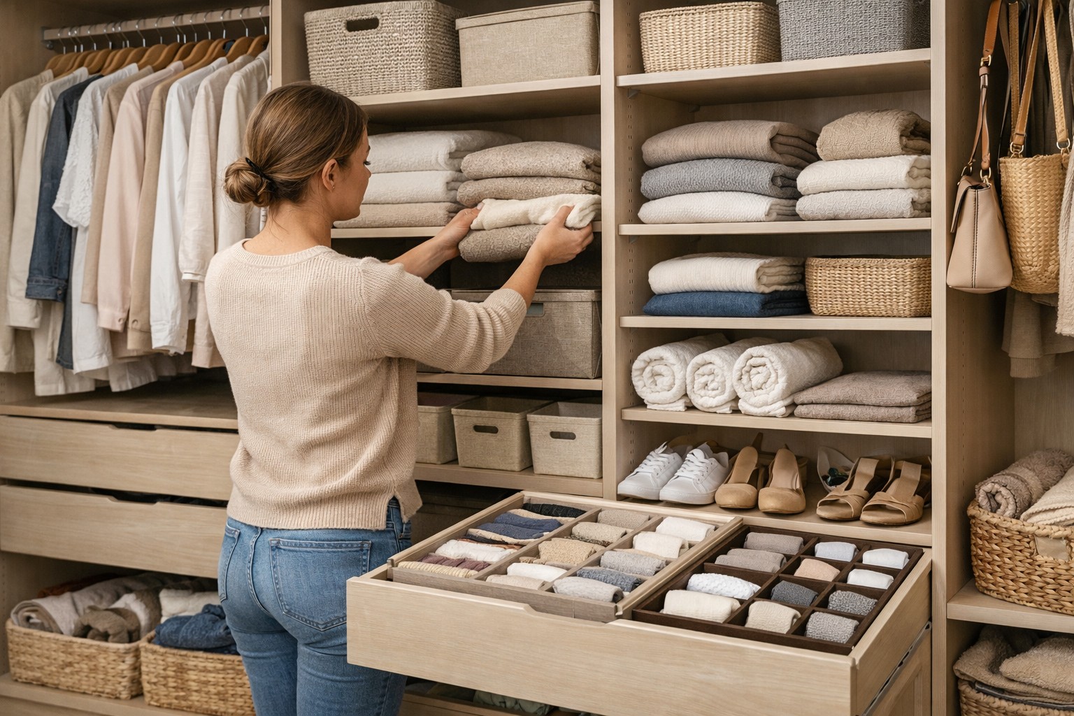 Å skape et harmonisk rom starter ikke med å kjøpe nye garderober, men med den rette organisering av oppbevaring. Når hver ting har sin rettmessige plass, ser huset ryddig ut